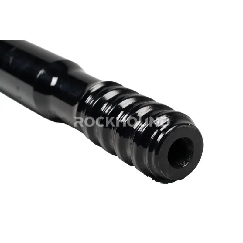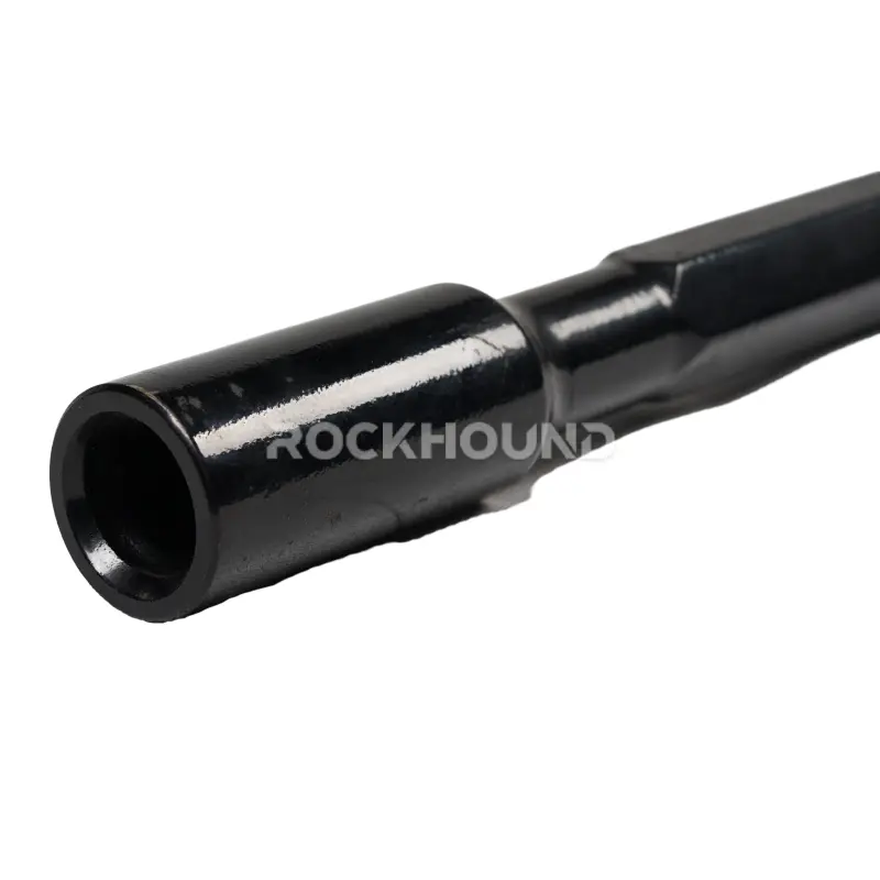 Manufactured from premium ZK22CrNi3Mo (23CrNiMo) alloy steel and subjected to RockHound’s proprietary Tratamiento térmico de carburación profunda de 20 horas, each rod delivers a hardened wear surface with a resilient, fracture-resistant core. The result is a drilling tool that maintains dimensional accuracy and thread integrity over extended operating cycles — even under the percussive loads and abrasive conditions typical of hard-rock mining.